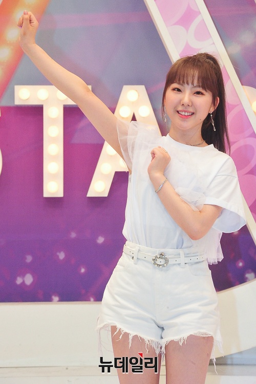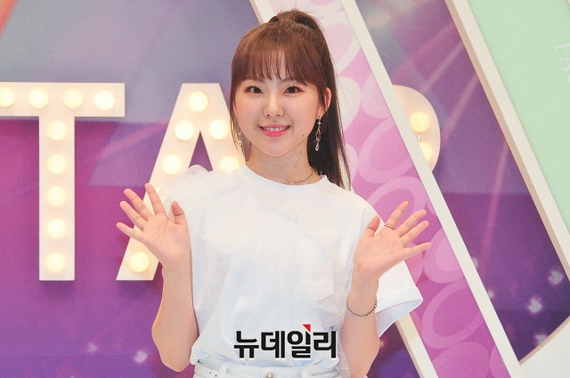 걸그룹 공원소녀 멤버 서경이 4일 오전 서울 마포구 에스플렉스 센터에서 열린 팩트인스타 공개녹화 전 포토타임을 갖고 있다.