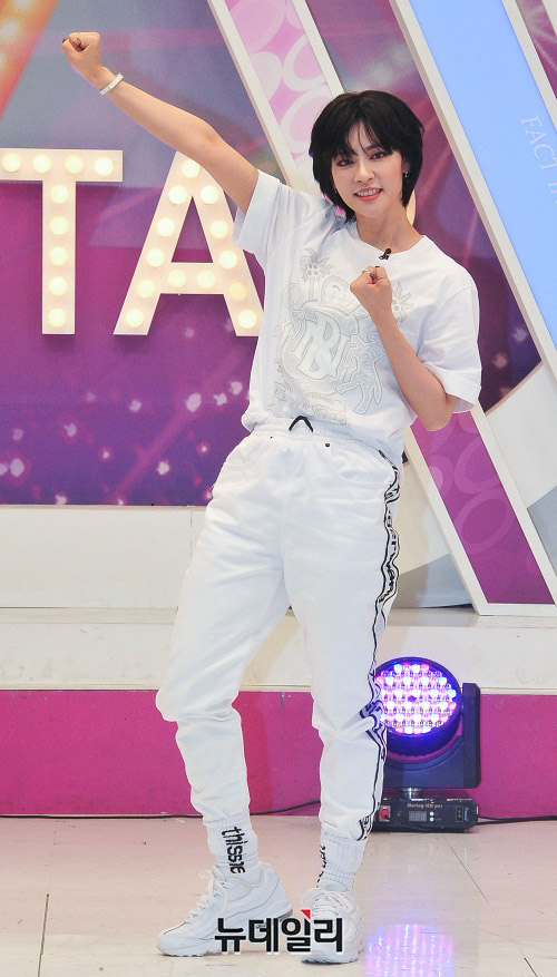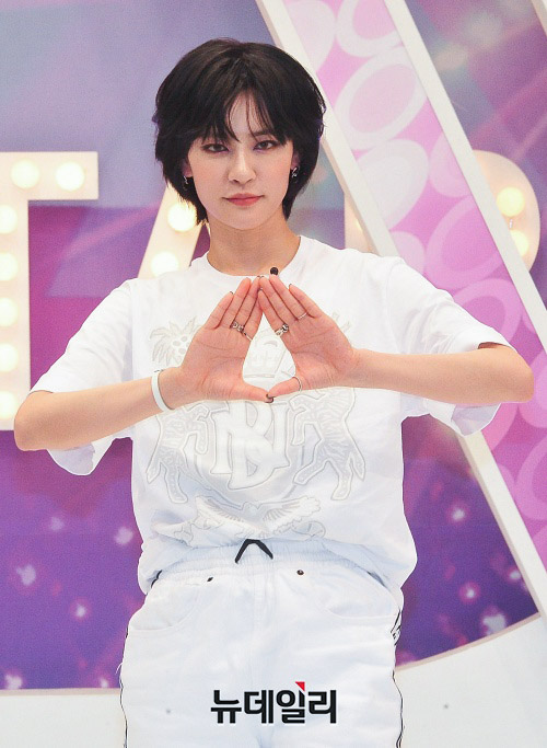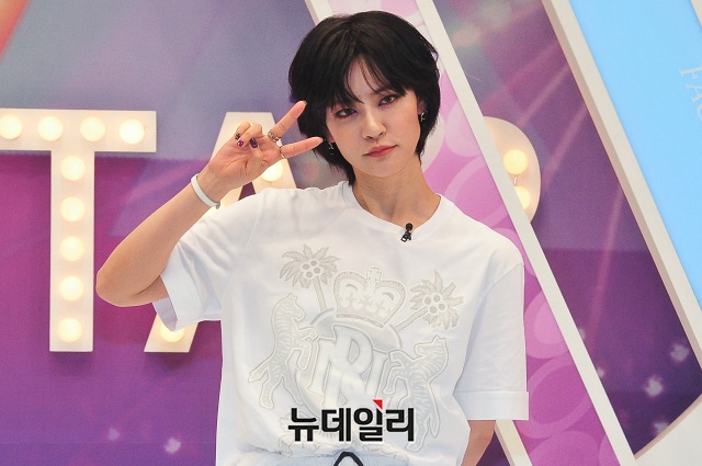 걸그룹 공원소녀의 멤버 미야가 4일 오전 서울 마포구 에스플렉스 센터에서 열린 팩트인스타 공개녹화 전 포토타임을 갖고 있다.