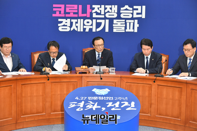 이해찬 더불어민주당 대표가 4일 오전 국회에서 열린 최고위원회의에서 모두발언하고 있다.