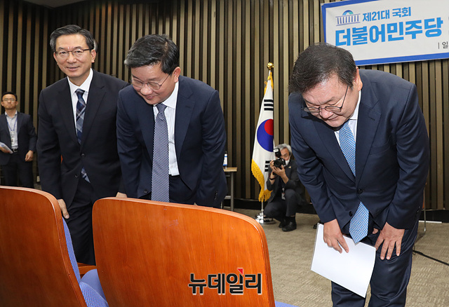 [포토] 민주당 원내대표 출마한 '김태년-전해철-정성호'