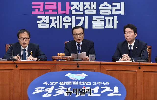 이해찬 더불어민주당 대표가 6일 오전 국회에서 열린 최고위원회의에서 모두발언을 하고 있다.