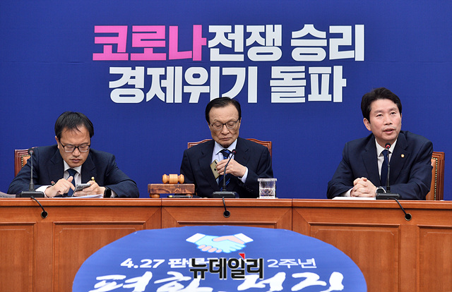 이 원내대표는 "지난 1년간 이해찬 대표, 여러 최고위원들 모시고 일할 수 있어 기쁘고 영광된 시간이었다"며 "지난 총선서 국민들이 주신 180석의 큰 뜻을 당선인들이 겸손하게 받아들이고 두려울 만큼 무거운 책임감으로 임해주길 바란다"고 말했다.