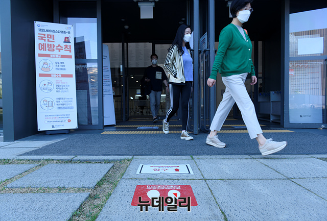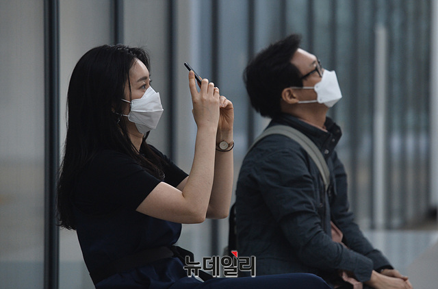'코로나19(중국 우한 폐렴)' 확산 방지를 위한 '사회적 거리두기'가 '생활 속 거리두기'로 전환된 6일 오후 서울 종로구 국립현대미술관을 찾은 시민들이 발열체크를 한 뒤 입장하고 있다. 미술관에 입장하기 위해서는 마스크 착용·발열 체크를 필수로 하고 있다.