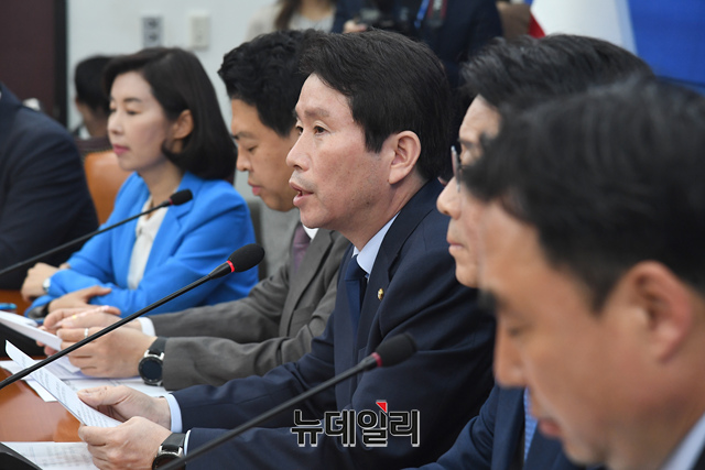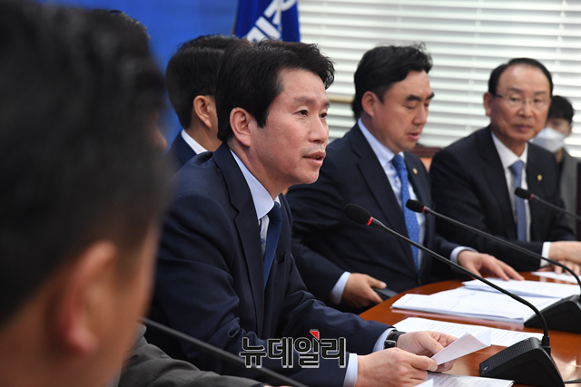 이인영 더불어민주당 원내대표가 7일 오전 국회에서 열린 정책조정회의에 참석해 모두발언을 하고 있다.