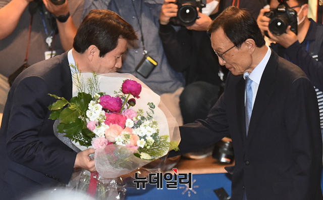 [포토] 이인영 원내대표에게 꽃다발 전달하는 이해찬 대표