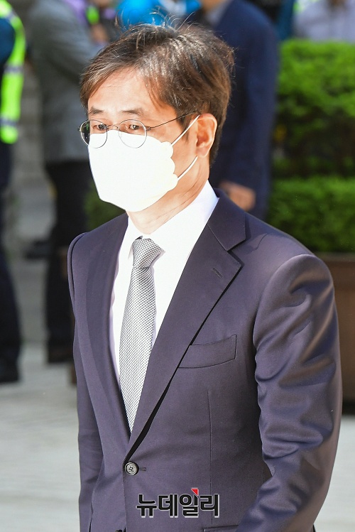 박형철 전 청와대 반부패비서관이 8일 오전 조국 전 장관의 감찰 무마 혐의 관련 첫 공판에 출석하고 있다.