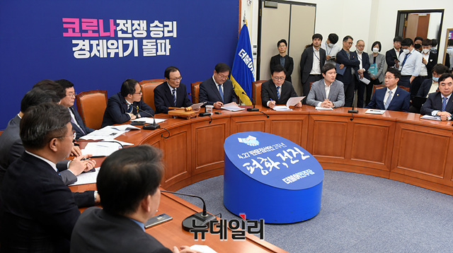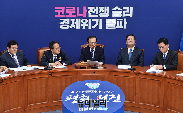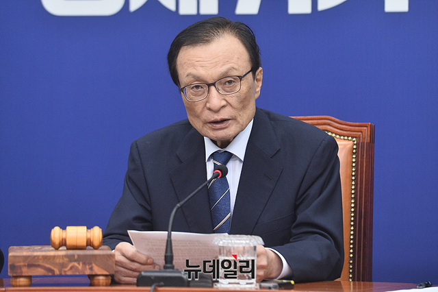 이해찬 더불어민주당 대표가 8일 오전 국회에서 열린 최고위원회의에서 모두발언을 하고 있다. 이날 김태년 신임 원내대표가 취임 후 최고위에 첫 참석했다.