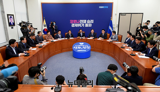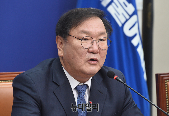 김태년 더불어민주당 신임 원내대표가 8일 오전 국회에서 열린 최고위원회의에서 모두발언을 하고 있다.