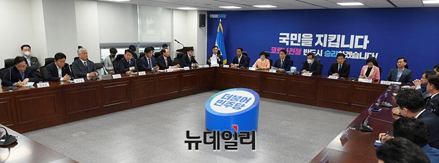 조정식 더불어민주당 코로나19 국난극복위원회 총괄본부장이 8일 오전 국회 의원회관에서 열린 코로나19 국난극복위원회 전체회의에서 발언을 하고 있다.