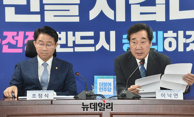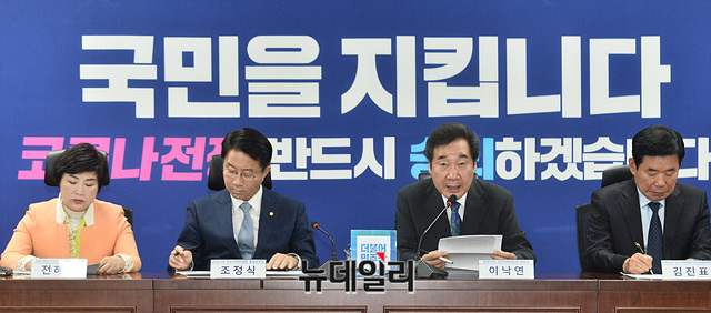 이낙연 더불어민주당 코로나19 국난극복위원회 위원장이 8일 오전 국회 의원회관에서 열린 코로나19 국난극복위원회 전체회의에서 발언을 하고 있다.