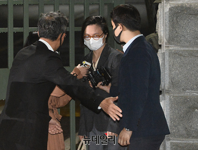 조국 전 법무부 장관 부인 정경심 교수가 10일 새벽 경기 의왕시 서울구치소를 나서고 있다.정 교수는 지난해 11월 11일 자녀 입시비리와 사모펀드 의혹 등 14개 혐의로 구속 기소됐다 10일 0시를 기해 석방됐다.법원은 8일 정 교수가 도주 가능성이 없고 증거인멸 가능성이 적다며 구속기간을 연장하지 않기로 밝혔다. 이로써 정 교수는 앞으로 불구속 상태로 1심 재판을 받게 된다.재판부는 14일 열리는 속행 공판에서 정 교수 등에게 증거인멸이나 도주 시도 시 추가 구속영장을 발부할 수 있다는 점을 고지할 예정이라고 밝혔다. (경기 의왕=박성원 기자)