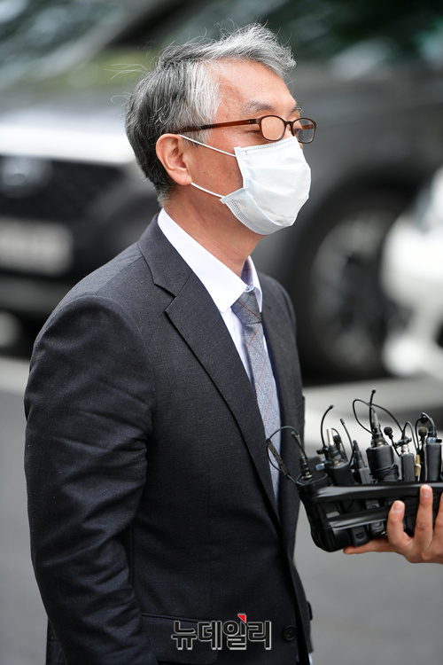 문은상 신라젠 대표가 11일 오전 서울 양천구 서울남부지방법원로 영장 심사를 받기위해 법정에 들어서고 있다. 검찰은 문 대표에게 자본시장과 금융투자업에 관한 법률 위반 등의 혐의로 구속영장을 청구했다.