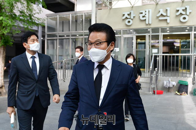 김용판 미래통합당 당선인이 10일 오후 대구 중구 경북대학교 장례식장에 마련된 주호영 미래통합당 신임 원내대표 부친 주구원 씨의 빈소를 조문하기 위해 입장하고 있다. (대구=정상윤 기자)