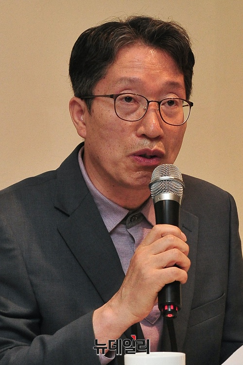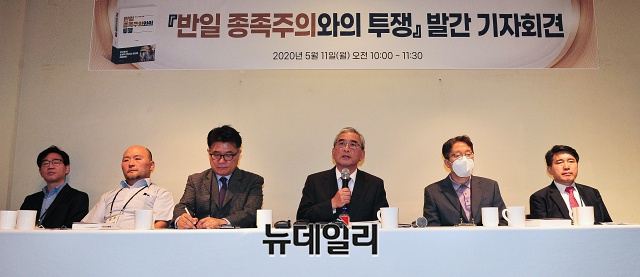 김낙년 동국대 교수가 11일 오전 서울 중구 달개비에서 열린 '반일 종족주의와의 투쟁' 발간 기자회견에서 발언하고 있다.이 교장을 비롯한 저자들은 징용배상 판결과 위안부 및 노무자 피해 배상 소송에 대한 해결책 요구, 일본과의 역사문제를 구명해 사회적 합의를 형성할 범국민적 연구포럼을 조직할 것을 제안했다.'반일 종족주의와의 투쟁'은 작년 7월 발간된 '반일 종족주의'에 대한 여러 비판을 비판하는 책이다. 위안부, 전시동원, 독도, 토지임야 수탈, 식민지 근대화 등 다섯 주제에 걸쳐 비판자의 주장을 소개하고, 그에 대해 반론을 펴는 형식의 책이다.기자회견에는 박상후 전 MBC 보도국 국제부장, 정안기 전 서울대 경제연구소 객원연구원, 김용삼 펜앤마이크 대기자, 이영훈 이승만학당 교장, 김낙년 동국대 교수, 주익종 이승만학당 상근이사가 참석했다.