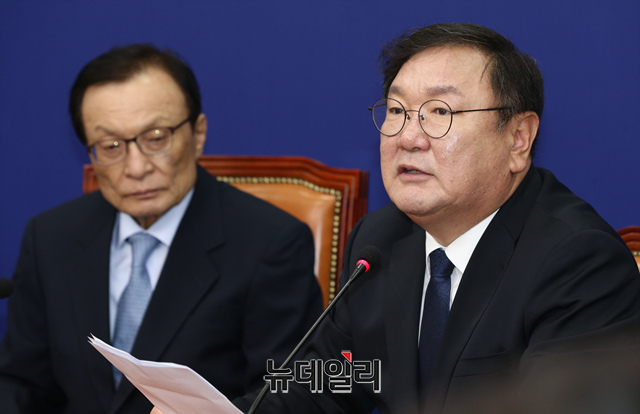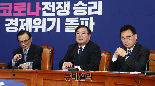 김태년 더불어민주당 원내대표가 11일 오전 국회에서 열린 최고위원회의에 참석해 모두발언을 하고 있다.