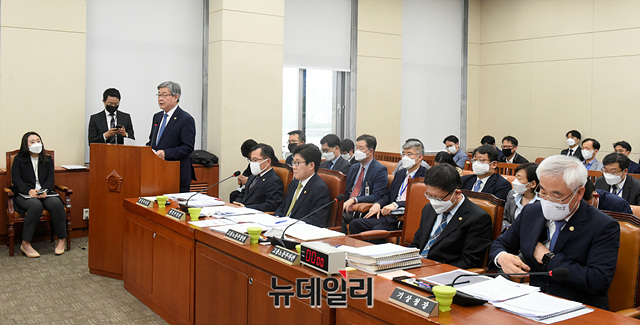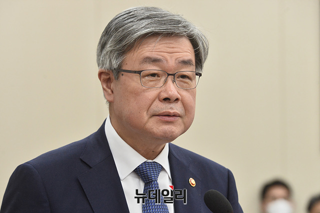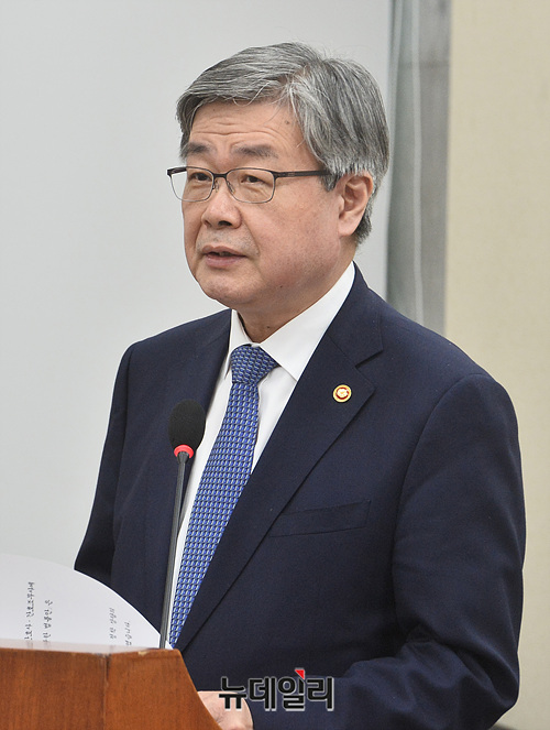 이재갑 고용노동부 장관이 11일 오후 국회에서 열린 환경노동위원회 전체회의에 참석해 발언을 하고 있다.