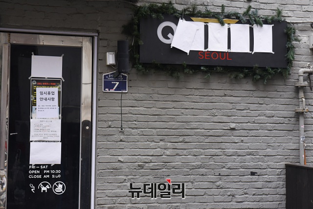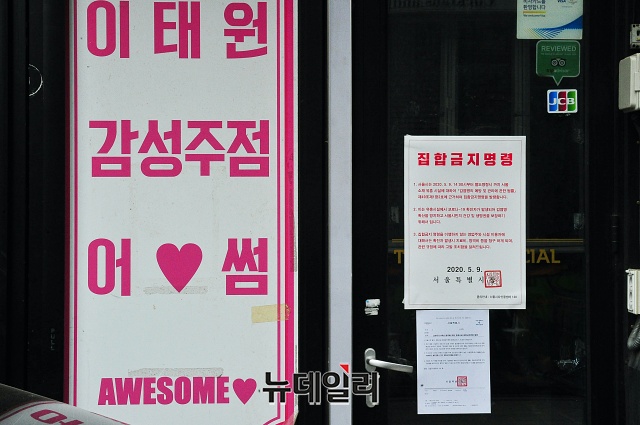 '코로나19(중국 우한 폐렴)' 신규 확진자가 35명 증가한 11일 오후 서울 용산구 이태원역 주변 거리에 클럽 관련 현수막이 걸려있다.현수막에는 "유흥주점, 클럽, 콜라텍은 '감염병예방법' 제49조 1항 1호에 따른 집단감염 위험시설이다"며 "영업중 준수사항을 위반하여 운영하는 업소에는 집합금지 명령을 할 수 있고 이행하지 않는 영업주와 시설 이용자는 고발조치(300만원 이하 벌금)되며, 코로나19 확진자 발생시 치료비, 방역비 등에 대한 손해배상을 청구한다"고 적혀있다.서울시는 9일 오후 2시부터 서울 소재 유흥시설에 집합금지명령을 발령했다.