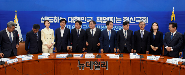 [포토] 인사하는 민주당 신임 원내대표단