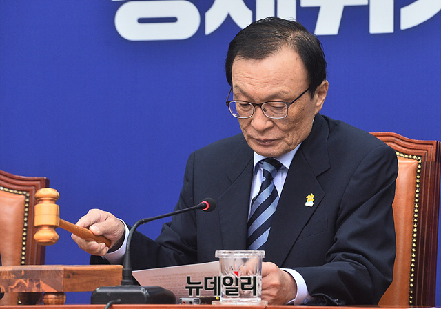 이해찬 더불어민주당 대표가 13일 오전 국회에서 열린 최고위원회의에서 의사진행을 하고 있다.