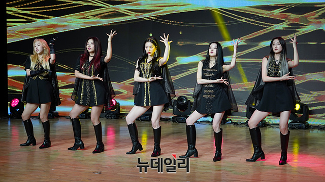 걸그룹 'BVNDIT(밴디트)'가 13일 오후 온라인으로 진행된 두 번째 미니앨범 'Carnival(카니발)' 쇼케이스에서 무대를 선보이고 있다.
