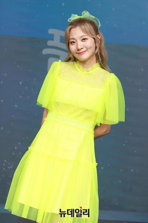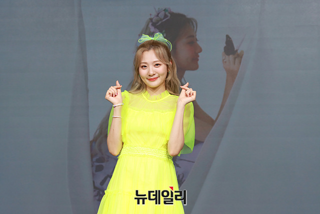 가수 '볼빨간사춘기'가 13일 오후 온라인으로 진행된 새 미니앨범 '사춘기집2 꽃 본 나비' 쇼케이스에서 포토타임을 갖고 있다.