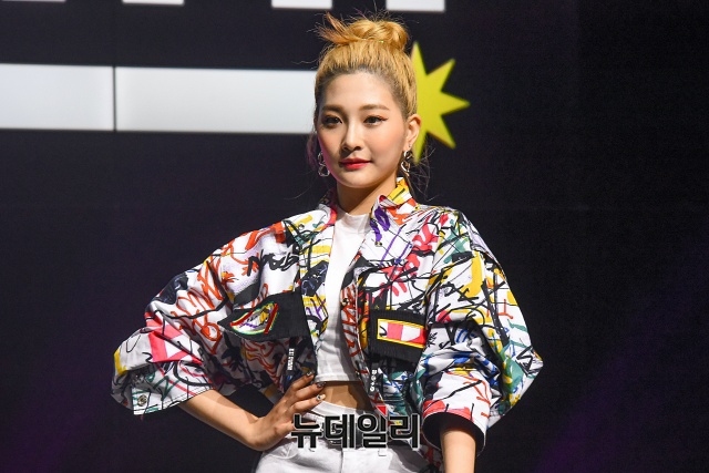 걸그룹 woo!ah!(우아!)멤버 민서가 13일 오후 서울 강남구 슈피겐홀에서 열린 데뷔 앨범 쇼케이스에서 포토타임을 갖고 있다.
