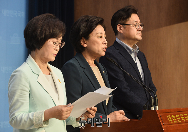 [포토] 남인순·김상희·홍익표 "윤미향 당선인과 위안부 피해자 간의 이간질 멈추라"