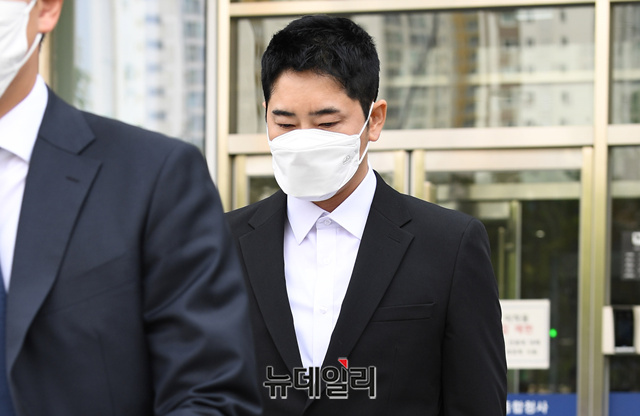 배우 강지환(본명 조태규)이 14일 오후 경기 수원시 수원고등법원에서 항소심을 마친 직후 법원을 나서고 있다. 성폭행 혐의를 받고 있는 강지환은 1심에서 징역 2년 6월에 집행유예 3년을 선고 받은 바 있다. (경기 수원=정상윤 기자)