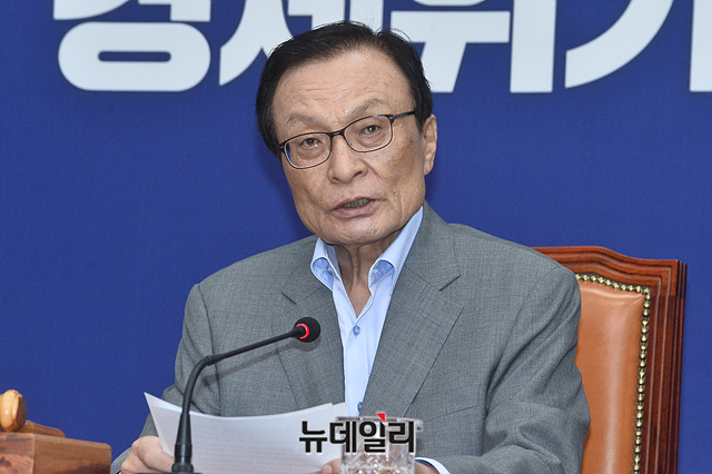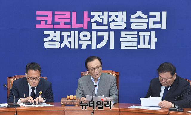 이해찬 더불어민주당 대표가 15일 오전 국회에서 열린 최고위원회의에서 모두발언을 하고 있다.