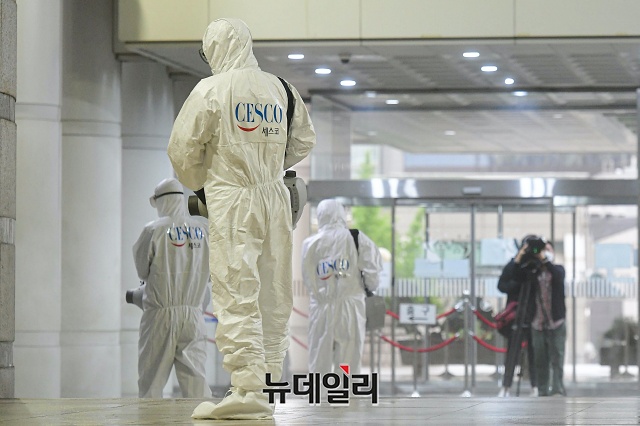 [포토] 서울구치소 직원 확진에 서울중앙지법 내외부 방역 실시