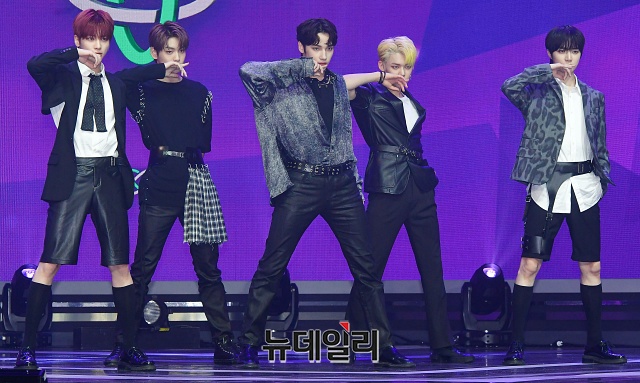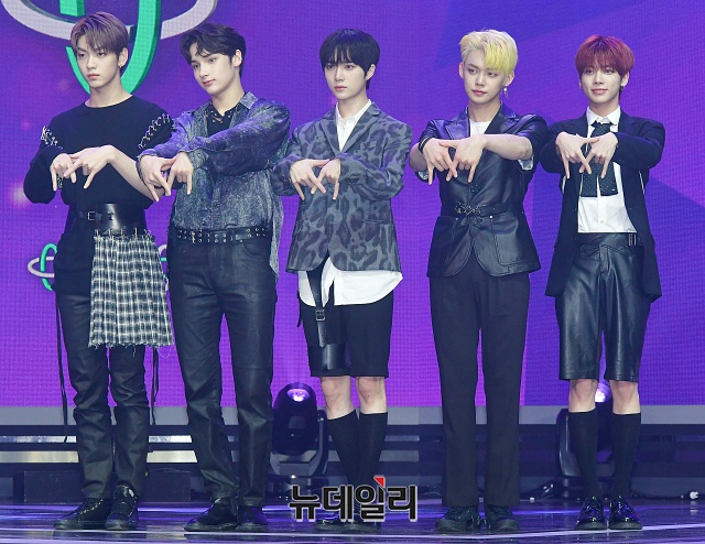 아이돌그룹 투모로우바이투게더(왼쪽부터 수빈, 휴닝카이, 범규, 연준, 태현)가 18일 오후 서울 광진구 예스24 라이브홀에서 열린 두번째 미니앨범 '꿈의장: ETERNITY(이터니티)' 쇼케이스에서 포토타임을 갖고 있다.타이틀곡 '불타버린 밤, 우린…(Can’t You See Me?)'는 트렌디한 팝 장르의 곡이다. 투모로우바이투게더만의 속삭이는듯한 보컬과 유니크한 내레이션이 특징이다.앨범은 타이틀곡 '세계가 불타버린 밤, 우린…(Can’t You See Me?)'을 포함해 6트랙으로 구성됐다. 18일 오후 6시 공개.