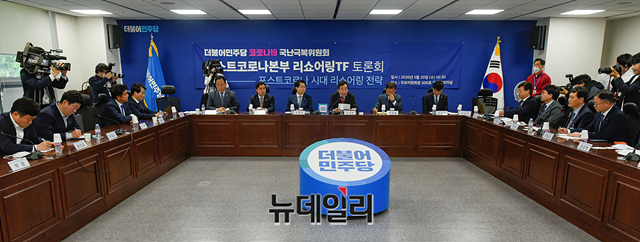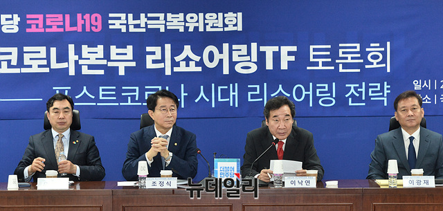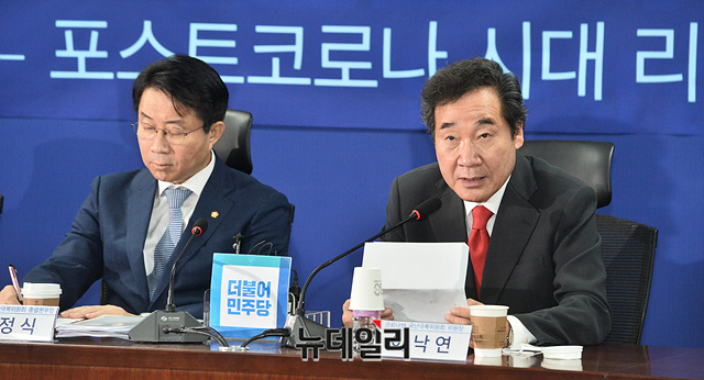 이낙연 더불어민주당 코로나19국난극복위원장이 20일 오전 국회 의원회관에서 열린 '코로나19 국난 극복 위원회 간담회'에서 발언을 하고 있다.