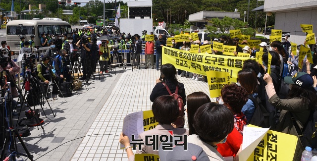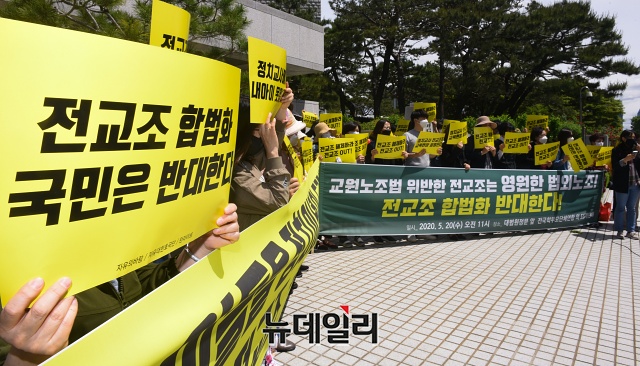 이들은 "해직교사가 전교조 회원이 되길 원한다면 전교조는 영원히 불법노조, 법외노조가 될 것이다"며 "법원의 전교조 법외노조 판결을 존중하고, 그 판결이 유지되길 촉구한다"고 밝혔다.이날 대법원에선 '전교조 법외노조 통보처분 취소 사건에 대한 전원합의체 공개변론'이 예정돼있다.같은 시간 전교조는 대법원 앞에서 '전교조 법외노조 취소 기자회견'을 열었다. -