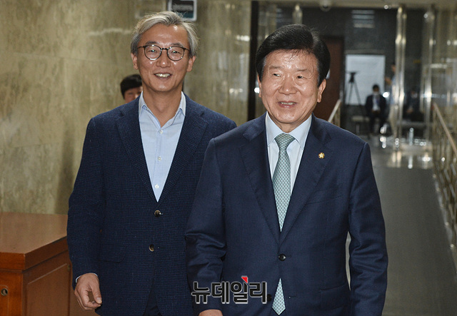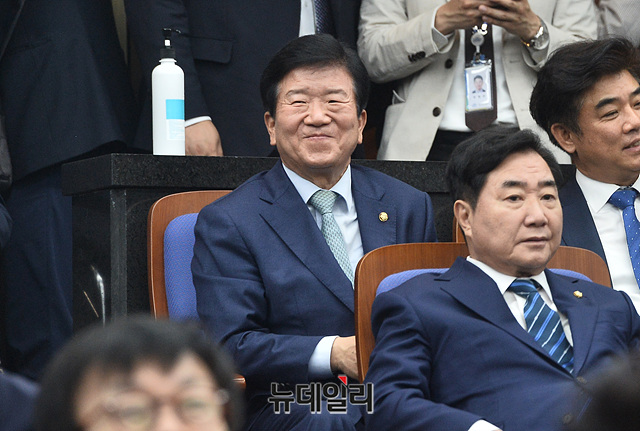 제21대 첫 국회의장 후보인 박병석 더불어민주당 의원이 20일 오후 국회에서 열린 의원총회에 자리하고 있다. 박 의원은 국회의장 경선 후보로 거론되던 김진표 의원이 불출마를 선언하면서 21대 국회 첫 국회의장으로 사실상 확정됐다.