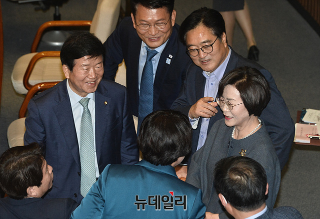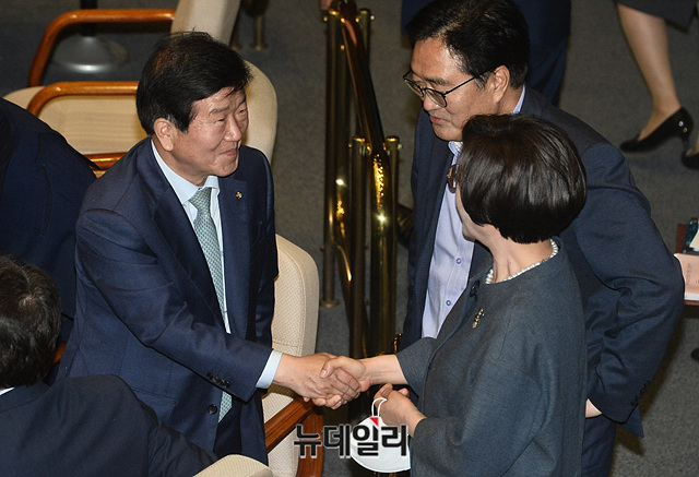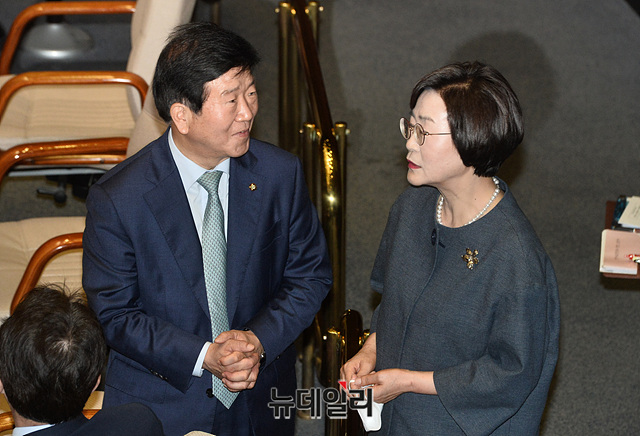 박병선 더불어민주당 의원, 김상희 의원이 20일 오후 국회 본회의장에서 열린 제20대 국회 마지막 본회의를 앞두고 대화를 나누고 있다.
