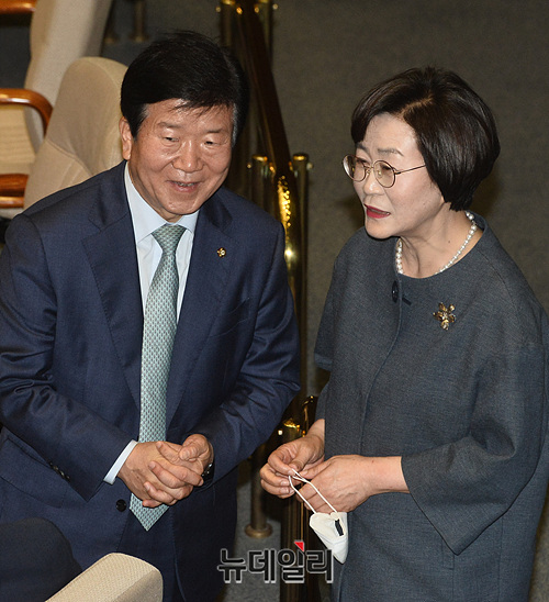 박 의원은 국회의장 경선 후보로 거론되던 김진표 의원이 불출마를 선언하면서 21대 국회 첫 국회의장으로 사실상 확정됐다. 김 의원은 헌정사상 첫 여성 국회부의장 후보로 나섰다.