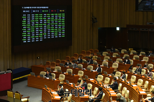 진실·화해를 위한 과거사정리 기본법 일부개정법률안 일명 과거사법이 20일 오후 국회 본회의장에서 열린 제20대 국회 마지막 본회의에서 통과되고 있다.