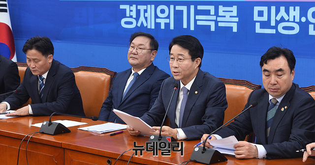 조정식 더불어민주당 정책위의장이 21일 오전 국회에서 열린 정책조정회의에서 모두발언을 하고 있다.