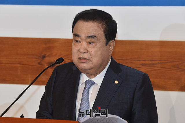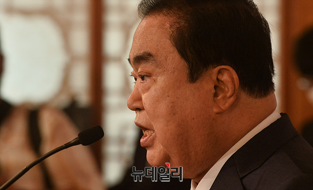 문희상 국회의장이 21일 오전 국회 사랑재에서 열린 퇴임 기자간담회에서 모두발언을 하고 있다.
