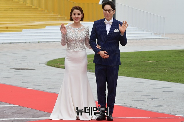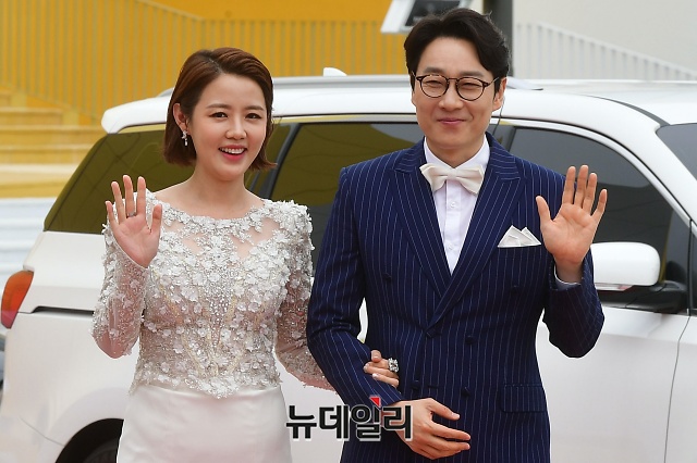 방송인 이하정(왼쪽), 이휘재가 21일 오전 인천 중구 파라다이스시티 스튜디오 파라다이스에서 열린 TV조선 예능 '아내의 맛 100회 특집 포토콜 행사'에 앞서 레드카펫을 걸어오고 있다.