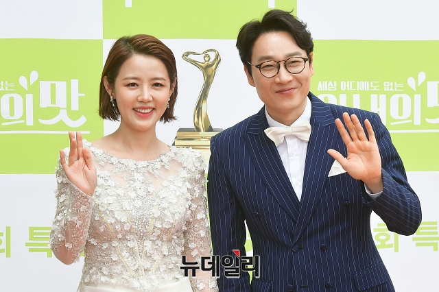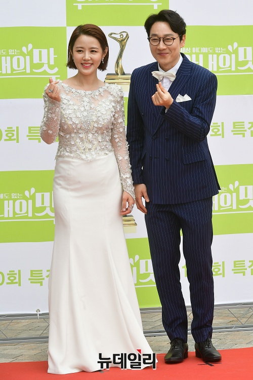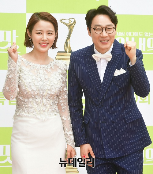 방송인 이하정(왼쪽), 이휘재가 21일 오전 인천 중구 파라다이스시티 스튜디오 파라다이스에서 열린 TV조선 예능 '아내의 맛 100회 특집 포토콜 행사'에서 포토타임을 갖고 있다.