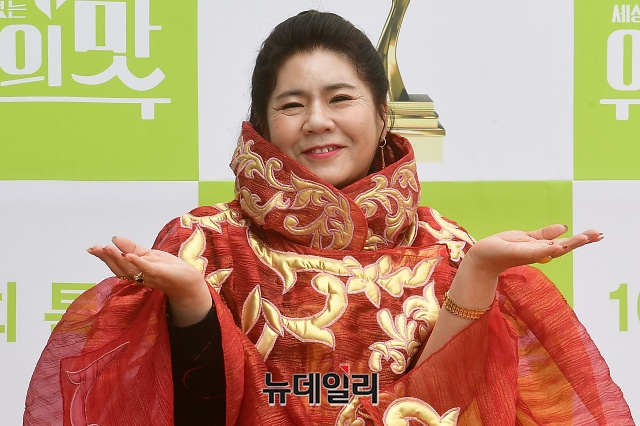 배우 함소원의 시어머니 중국마마가 21일 오전 인천 중구 파라다이스시티 스튜디오 파라다이스에서 열린 TV조선 예능 '아내의 맛 100회 특집 포토콜 행사'에서 포토타임을 갖고 있다.