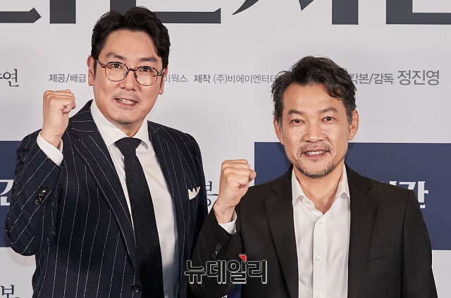 배우 조진웅(왼쪽), 정진영이 21일 오전 온라인으로 진행된 영화 '사라진 시간(감독 정진영)' 제작발표회에서 포토타임을 갖고 있다.
