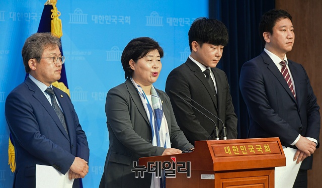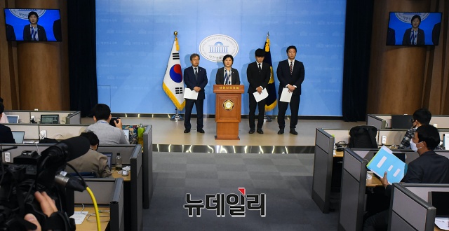 서영교 더불어민주당 의원이 22일 오전 국회 소통관에서 구하라법 통과촉구 기자회견을 갖고 있다.서 의원은 "21대 국회에서 구하라법을 통과시켜 불합리한 일과 억울함이 없도록 행복한 세상을 만들겠다"며 "21대에 다시 여러 의원과 상의해서 재발의 하겠다"고 밝혔다.'구하라법'은 20여년 전 자신들을 버리고 떠난 친모가 구하라가 남긴 재산의 절반을 가져가 부당함을 느낀 구 씨가 '부양의무를 게을리한 부모는 재산을 상속받을 자격이 없다'며 국회 입법 청원을 올려 10만명의 동의를 얻었다. 국회 법제사법위원회는 지난 19일 법안심사소위를 열고 이를 논의했지만 '계속 심사' 결론이 나면서 20대 국회에서 처리가 불발됐다.
