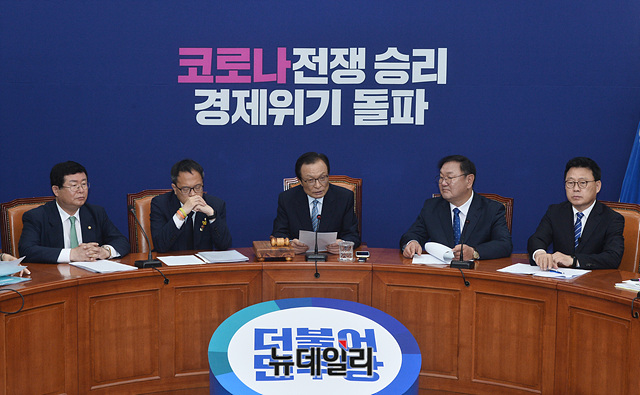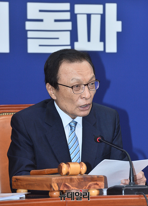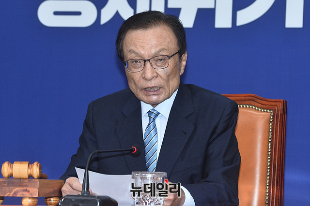 이해찬 더불어민주당 대표가 25일 오전 국회에서 열린 최고위원회의에서 모두발언을 하고 있다.