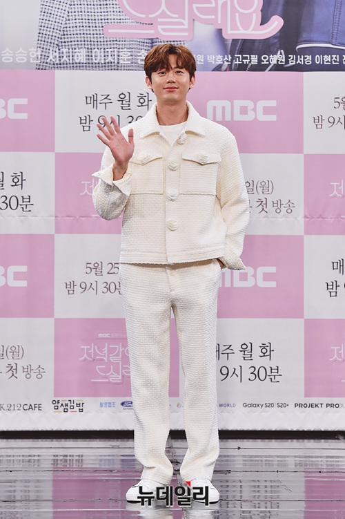 배우 이지훈이 25일 오후 온라인으로 진행된 새 월화미니시리즈 '저녁 같이 드실래요?' 제작발표회에서 포토타임을 갖고 있다.