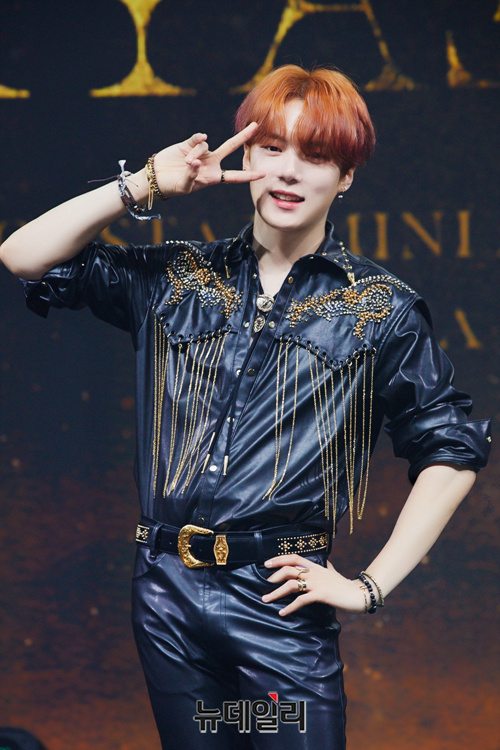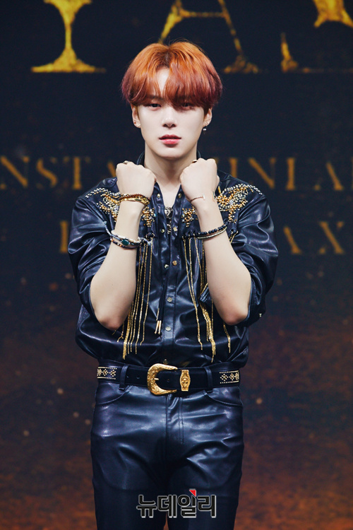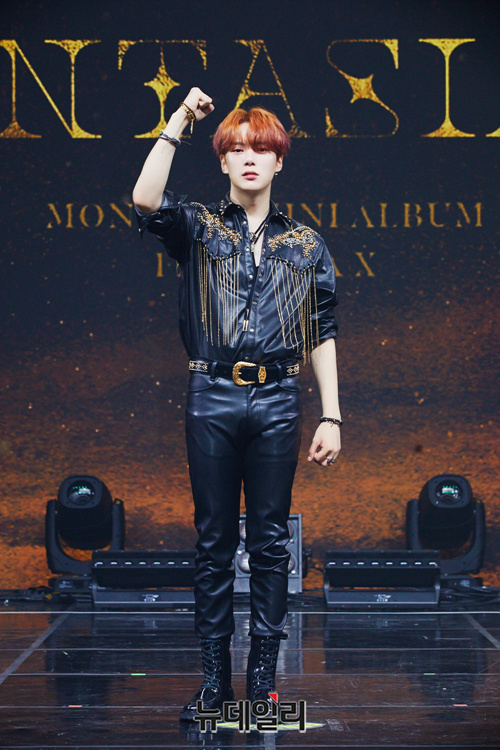 몬스타엑스 민혁이 26일 오후 온라인으로 진행된 미니앨범 'FANTASIA X(판타지아 엑스)' 쇼케이스에서 포토타임을 갖고 있다.