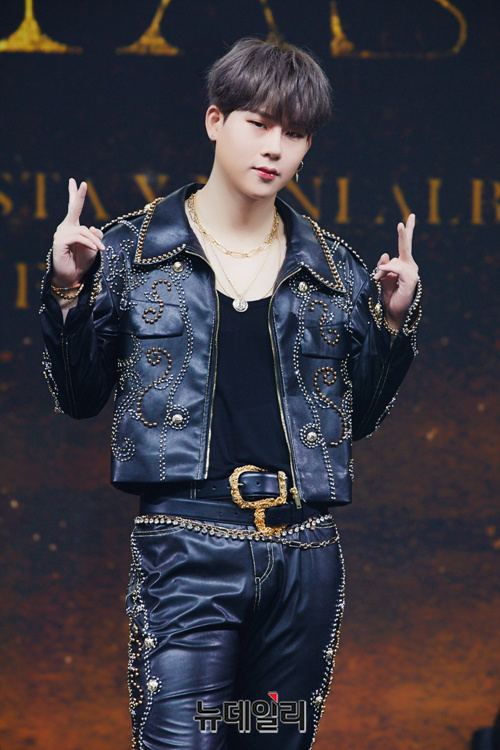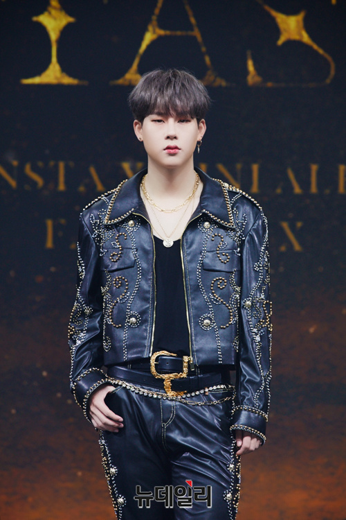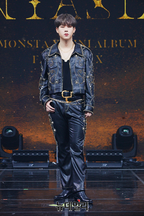 몬스타엑스 주헌이 26일 오후 온라인으로 진행된 미니앨범 'FANTASIA X(판타지아 엑스)' 쇼케이스에서 포토타임을 갖고 있다.