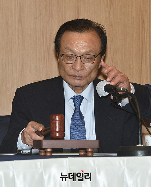 이해찬 더불어민주당 대표가 27일 오전 서울 서초구 더케이호텔에서 열린 최고위원회의에서 의사진행을 하고 있다.