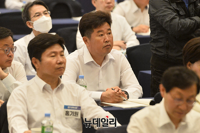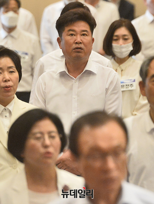 이규민 더불어민주당 당선인이 27일 오전 서울 서초구 더케이호텔에서 열린 '제21대 국회 더불어민주당 국회의원 당선인 워크숍'에 참석해 자리하고 있다.